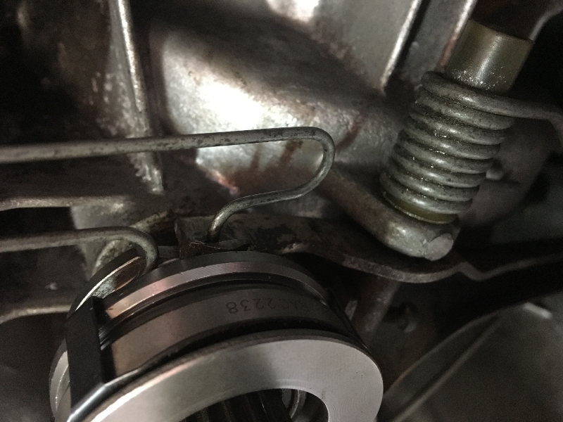 par contre je me suis fais ch.. pour engager le ressort a gauche de la butée car ma fourchette est vrillée c'est rentré mais le ressort est légèrement de travers
