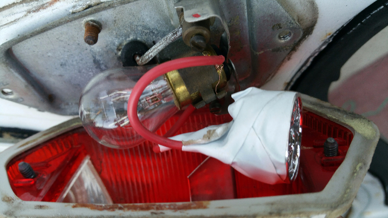 la LED éclaire très bien mais vue la forme du culot la puissance va pas sur l'arrière ,don j’ai fait le système de David, avec deux petit fil et
