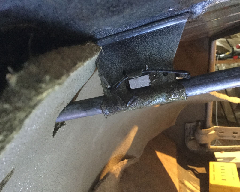 Sur la photo, on ne vois pas très bien, mais la partie au bout de ta flèche rouge fait normalement partie de la caisse et non du châssis. Seules les 4 rallonges transversales sont soudées au châssis.