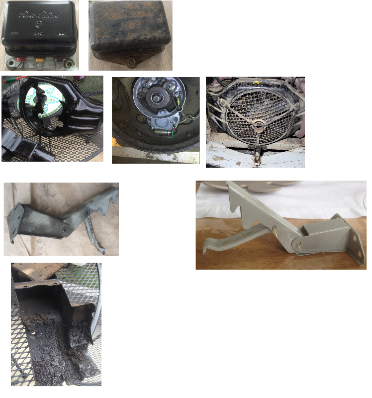 Pour la partie mécanique , la remise en route n'a pas été très compliquée , juste Bobine / Rupteur /condo / Fil bougie/et 2 bougies et la belle a redémarrer bon il est vrai que régulièrement mon père tournait le moteur a la manivelle histoire qu'il ne se bloque pas .